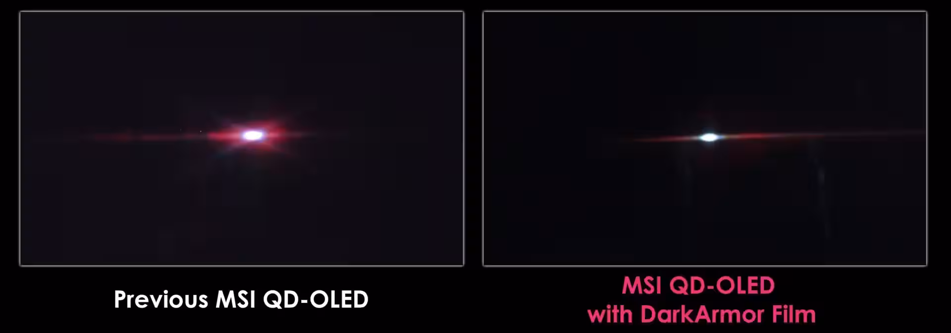 The two monitors feature DarkArmor Film technology designed to address the typical shortcomings of QD-OLED displays. The special coating removes the purple and reddish hues that typically appear on such screens in ambient light. MSI says the level of «black» color is deeper by about 40 percent, which improves contrast and overall image quality. In addition, the screen’s surface hardness has been increased from 2H to 3H, providing 2.5 times better scratch protection for everyday use.