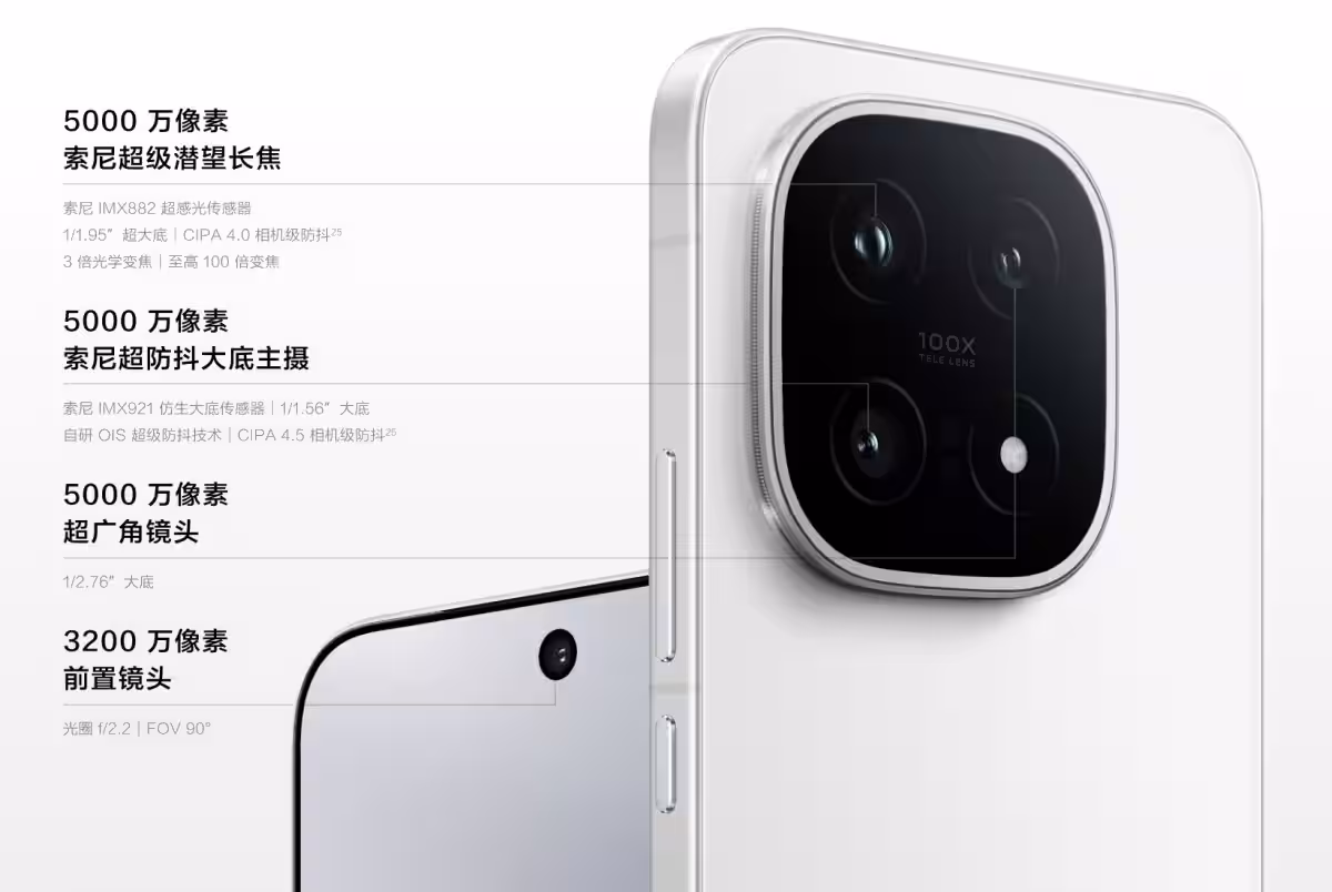 The main camera consists of three 50-megapixel sensors: a Sony IMX921 main sensor (1/1.56″, with OIS), a Sony IMX882 periscope telephoto lens with triple optical zoom and an ultra-wide-angle module. The front camera has a 32 MP resolution. There is RGB illumination around the camera unit.
