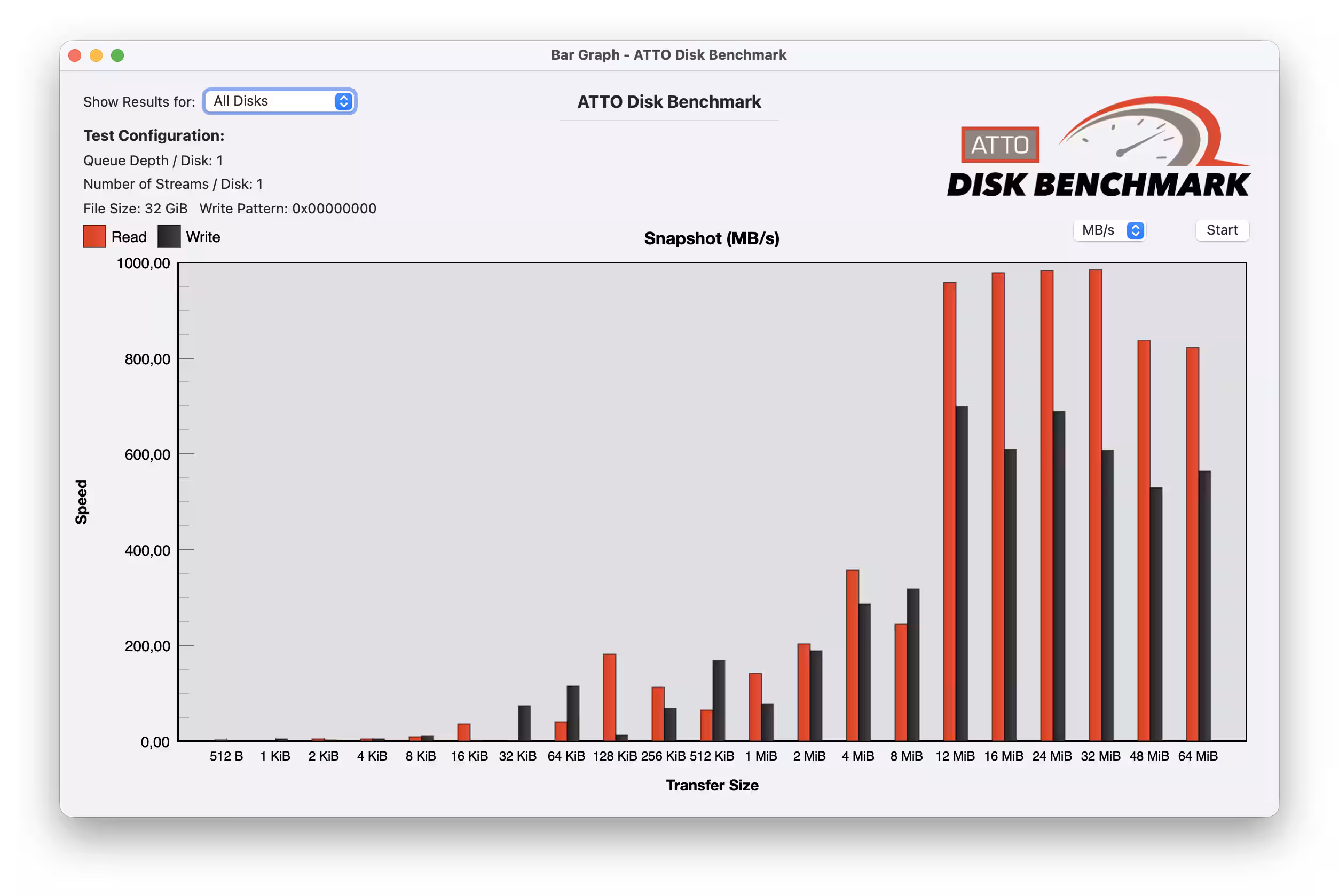 Tests with Magic Benchmark Disk Test confirmed these figures, though results varied slightly. When copying 10GB files, speeds dropped since the cache fills and writing falls back to the raw flash memory speeds. Even so, falling to around 700MB/s isn’t a dealbreaker—it’s still within USB 3.2 Gen 2 standards.