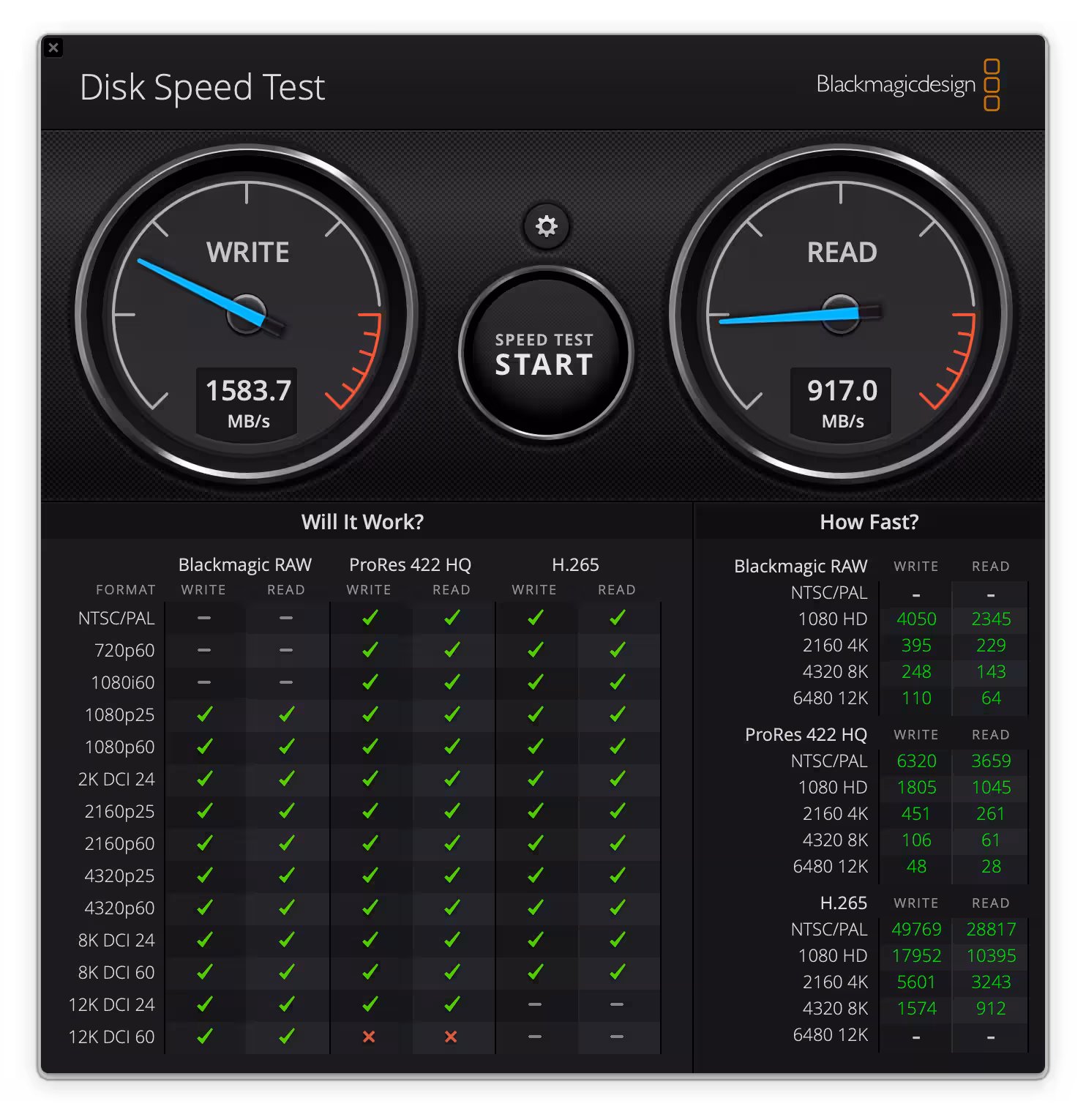 In synthetic benchmarks using small files, the X1 Max impresses. Testing the 1TB model with BlackMagic Disk Speed Test returned read speeds hitting the claimed 1000MB/s mark, while write speeds even soared above 1500MB/s. Speeds were nearly identical over both the Type-A and Type-C ports, showcasing a well-executed implementation of both interfaces. When transferring a 5GB file, speeds dipped slightly—reads averaged around 917MB/s, and writes slowed to about 500MB/s, though this drop isn’t critical for most tasks.